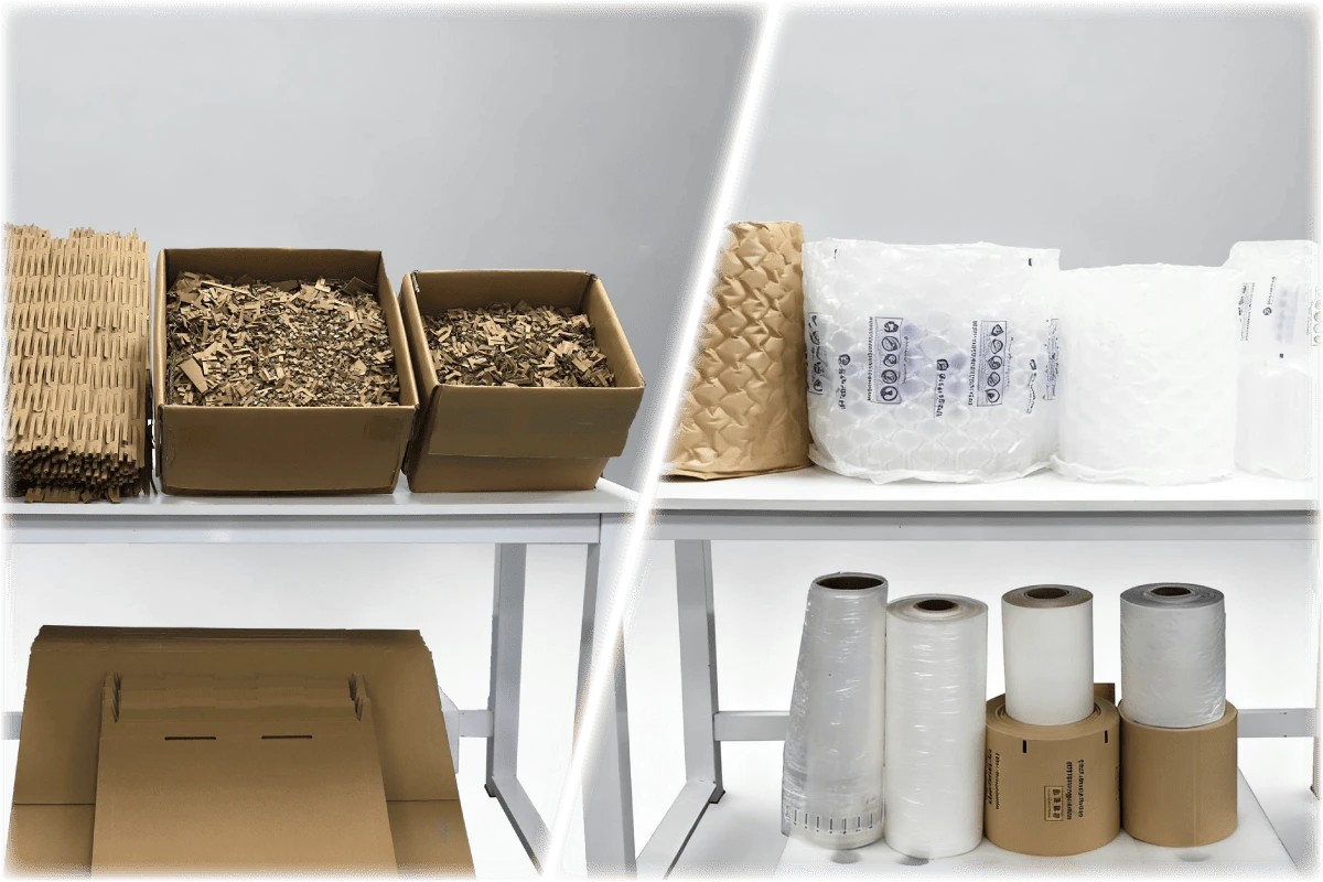 Plastic bubble wrap has long been the most common cushioning material. While it provides good protection, it also has limitations for small operations. Large rolls require storage space, and handling them during packing can slow down workflows. In addition, many companies are now searching for ways to reduce plastic packaging.