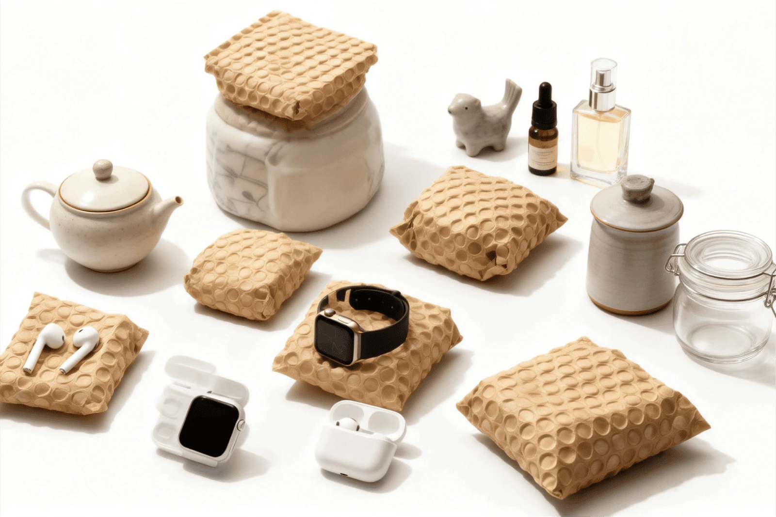 Small electronics and their accessories are also suitable. Phone cases, chargers, small tech gadgets, and similar items don’t need extreme cushioning. Paper bubble wrap works effectively for these products, especially when combined with a sturdy outer box.