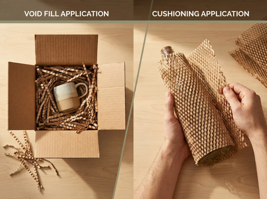 Void fill focuses on occupying empty space to prevent movement, while cushioning absorbs impact and vibration. Some businesses require both, but most lean toward one primary function.